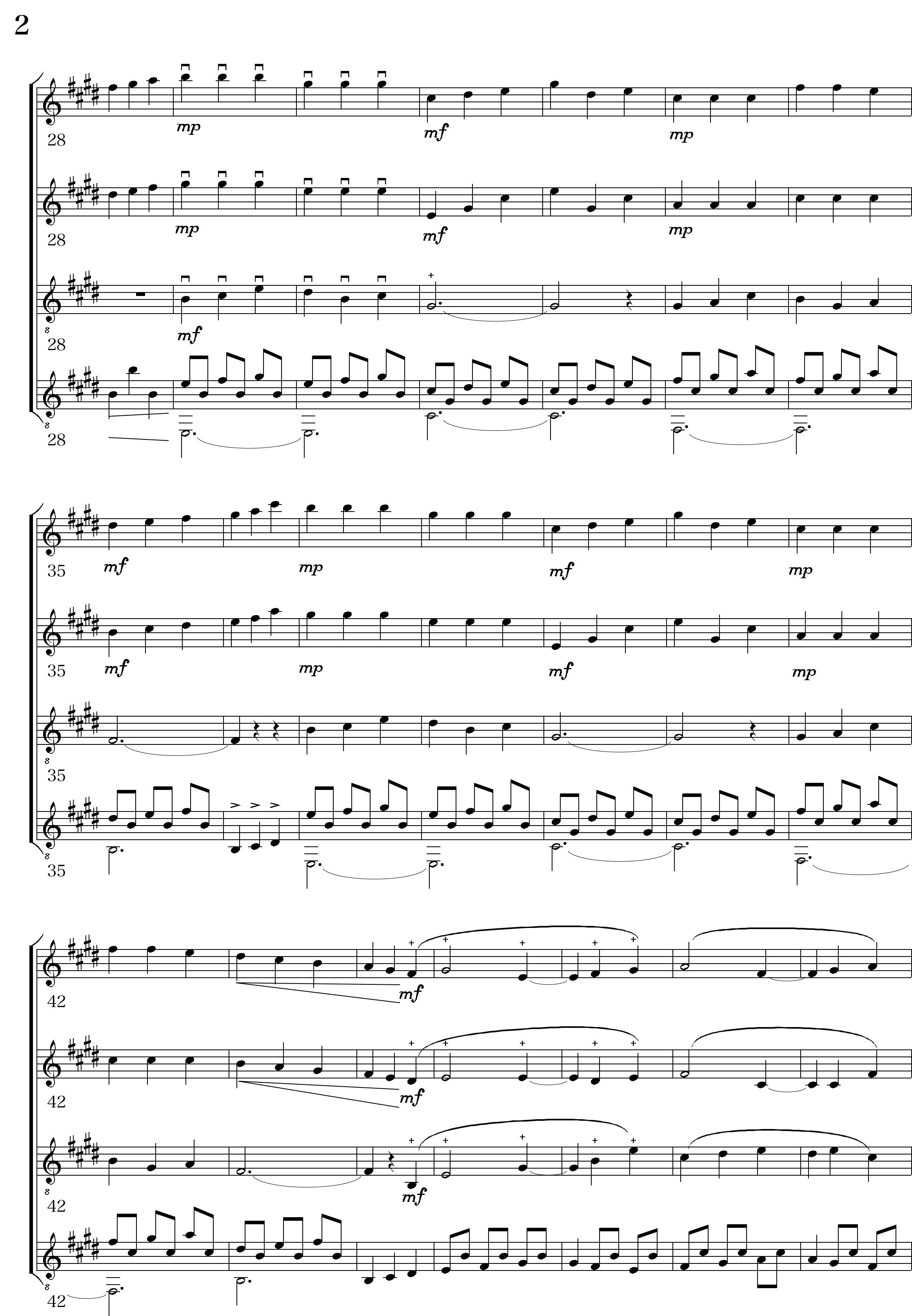 当初、二重奏の為に書いたこの曲を4重奏で演奏出来るようにアレンジし直しました。