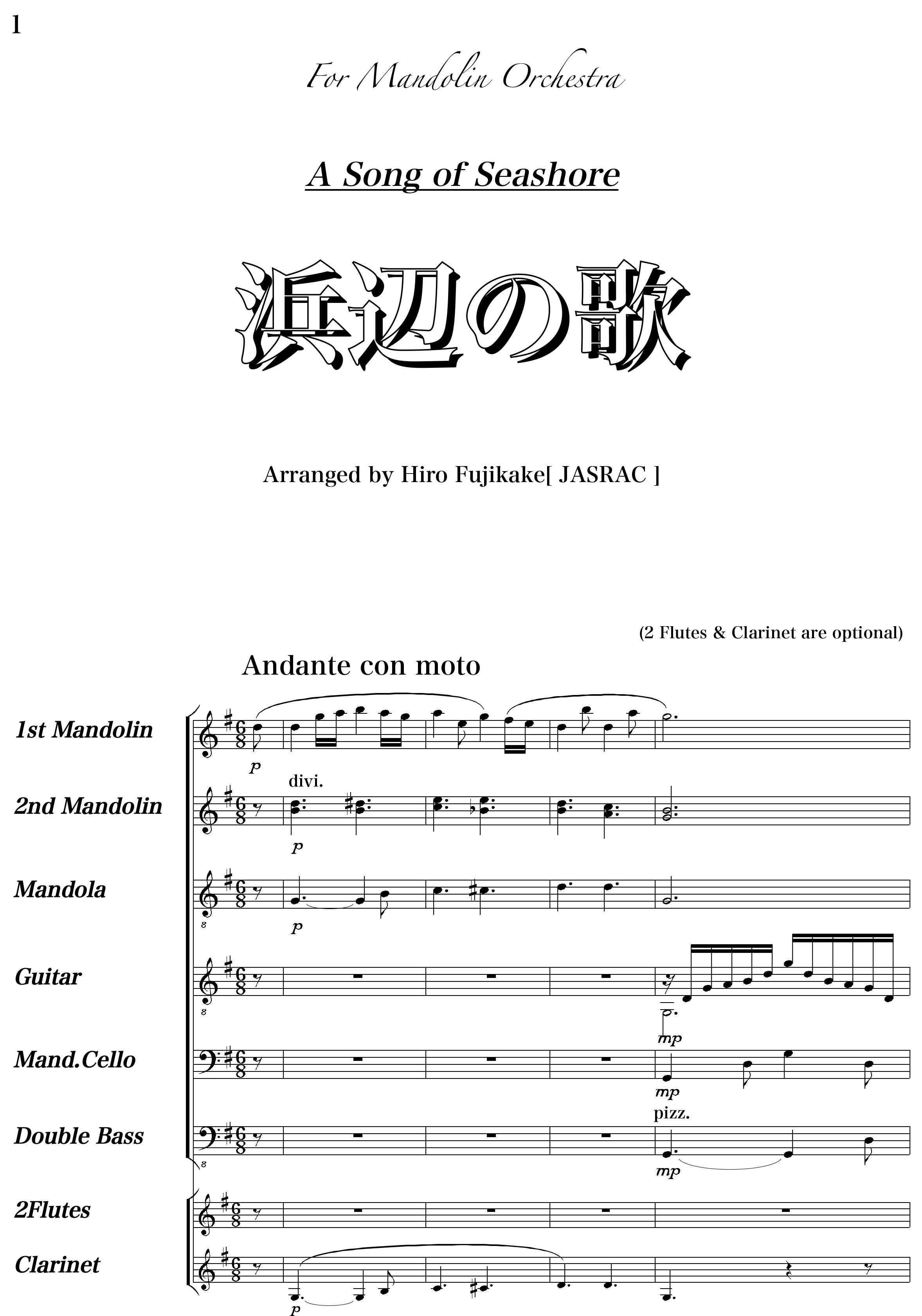 Originally this is for the album of “Four Seasons in Japan : Holliger(Ob)I Musici”. It’s been rewritten for a mandolin orchestra. Japanese beautiful melody.